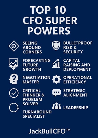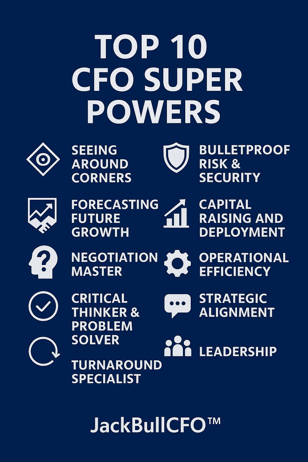 The below list is definitely not exhaustive but a brief overview of some of the skills I have developed as a CFO and a trusted advisor to the CEO and board, which have been likened to superpowers!